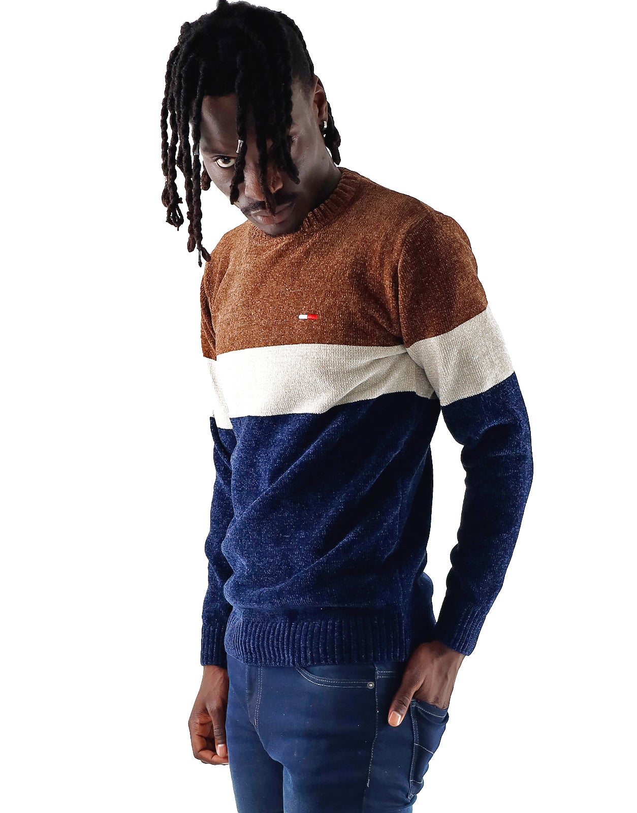 Discover the Paul Pullover, a masterpiece of contemporary design and unparalleled comfort. This captivating crew neck sweater redefines casual sophistication with its distinctive colour-block pattern, seamlessly blending a vibrant teal upper panel with a sleek mid-grey central stripe and a grounding dark charcoal lower section. Perfect for any season, the PAUL Pullover ensures you stay stylish and cozy, making it an essential addition to your modern wardrobe.