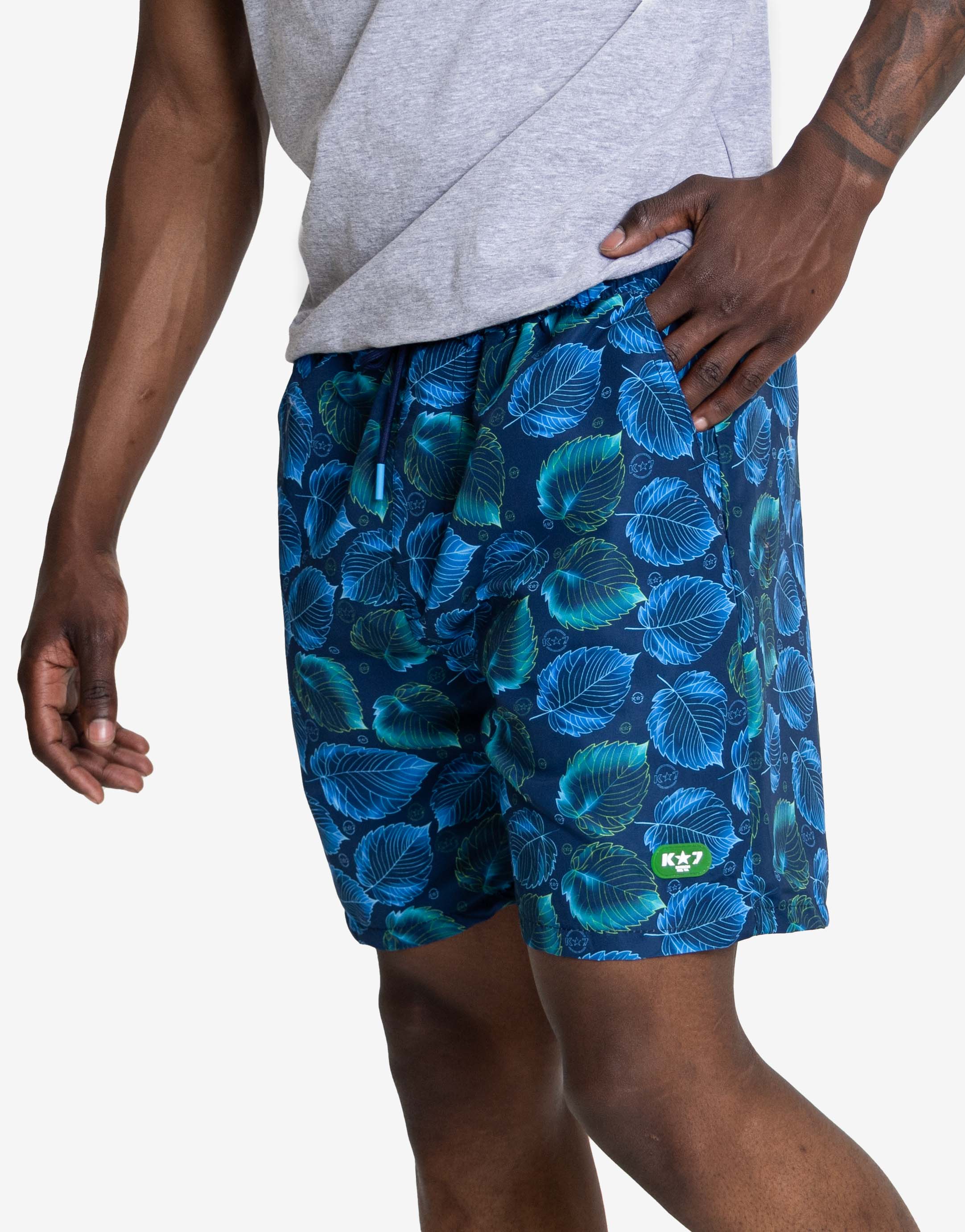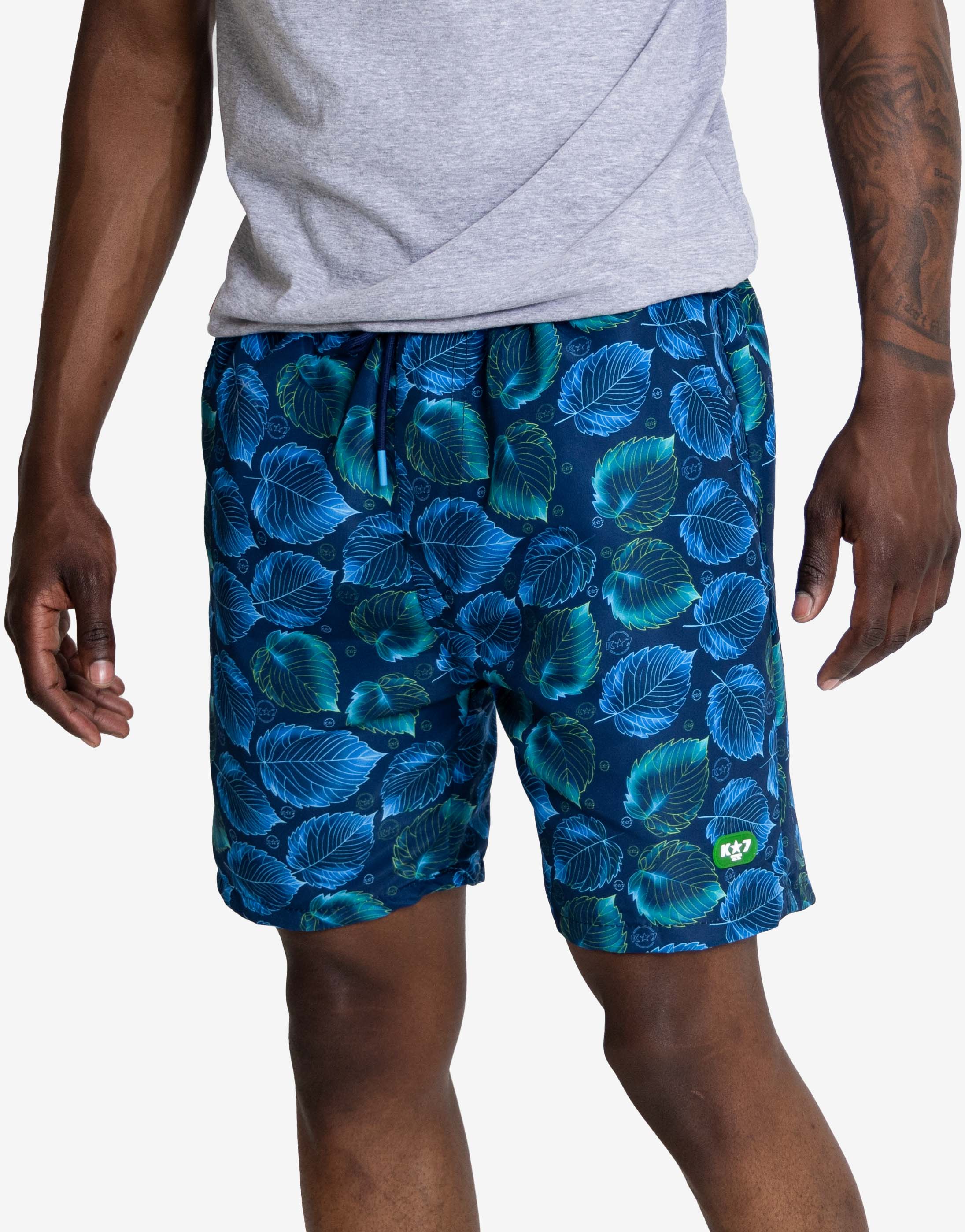 Achieve a cool, sophisticated look with the Logo Swim Shorts. Featuring a striking leaf-pattern print in oceanic blues and teals, these shorts combine style and practicality for days spent poolside or by the coast.