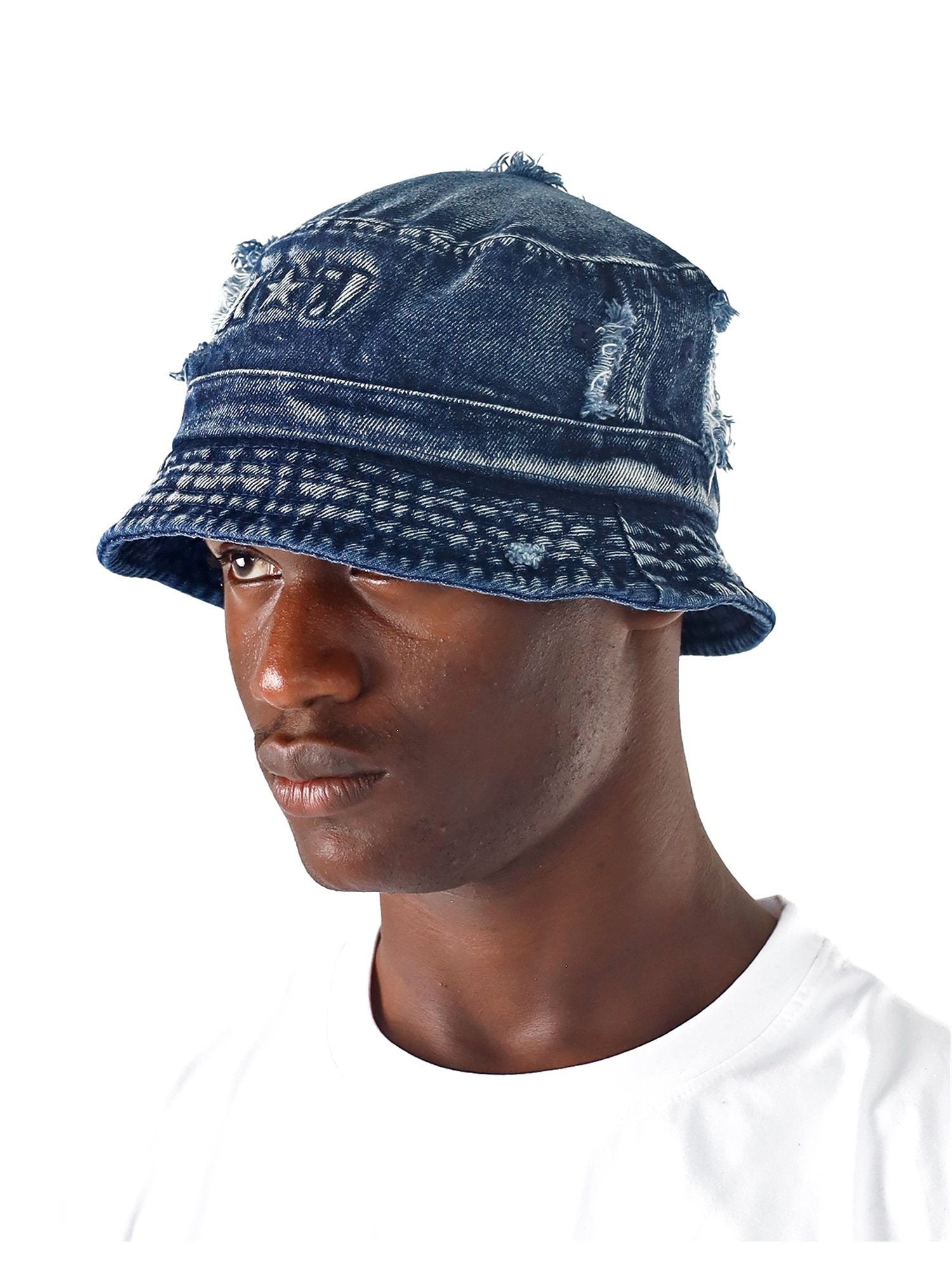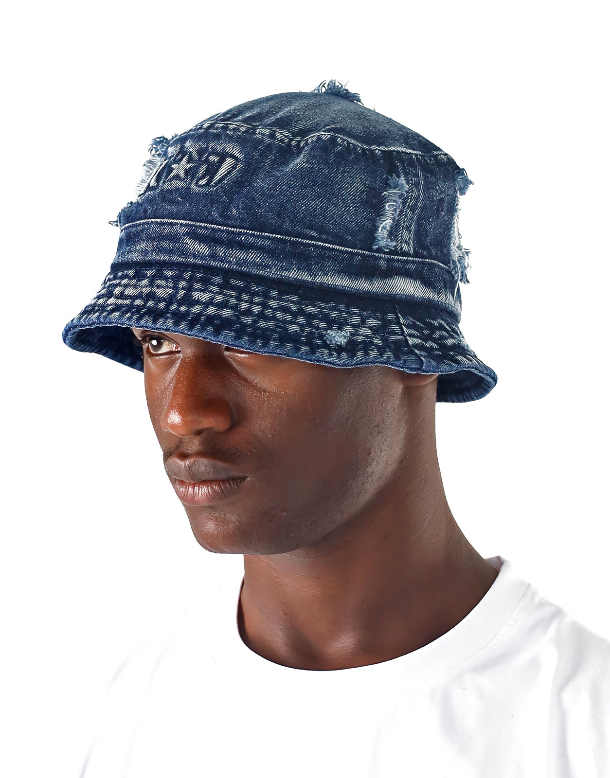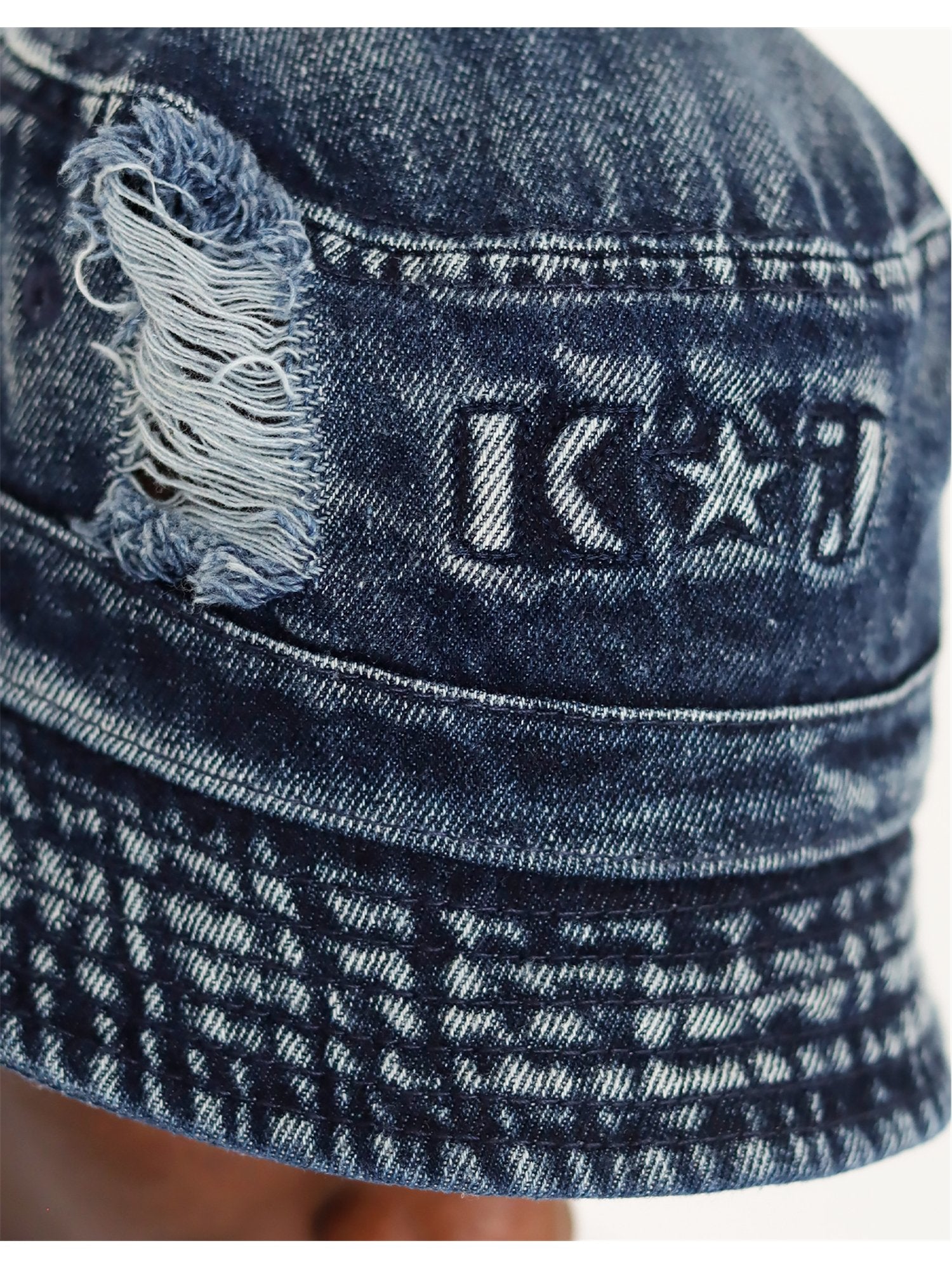 The Ripper Denim Bucket Hat adds a touch of edgy style to your wardrobe. Crafted from durable denim with a distressed finish, this hat offers a relaxed and casual look. It's the perfect accessory to elevate your street style with an authentic, lived-in aesthetic.