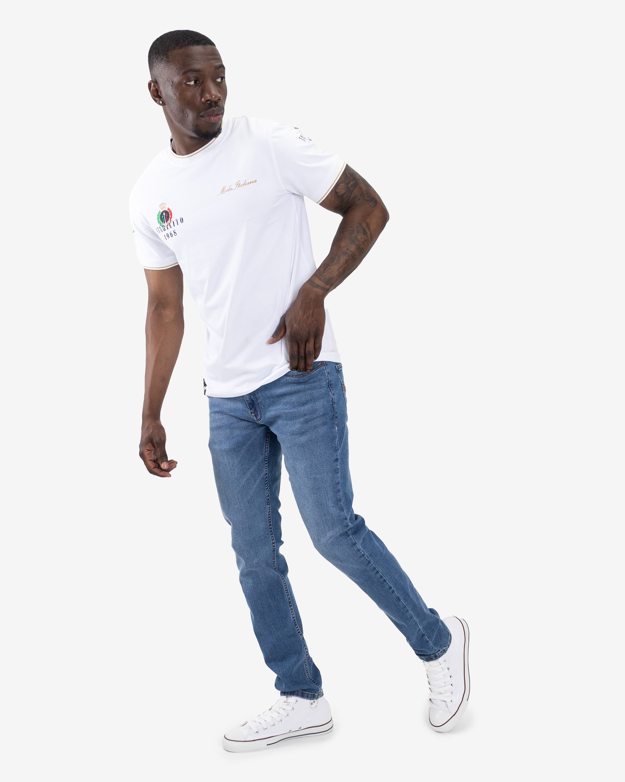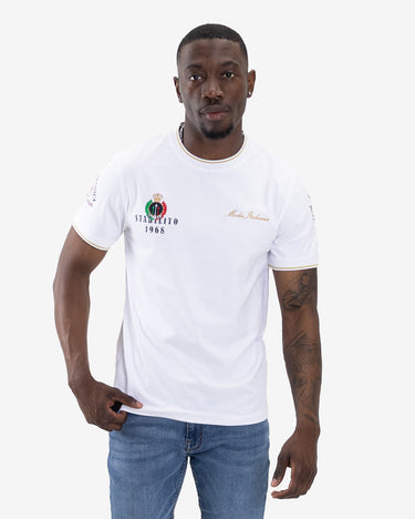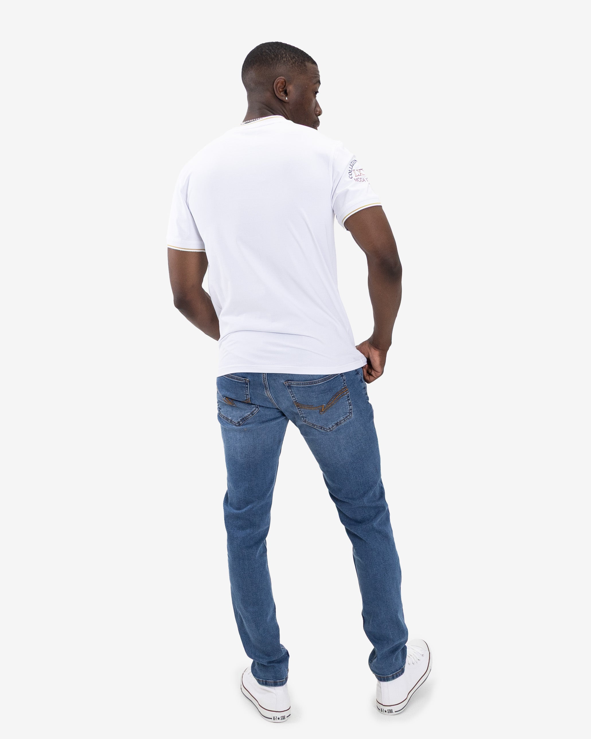 The Guido T-shirt, by Mode Italiana, is a masterclass in understated elegance. Crafted from a luxuriously soft CVC fabric, this pullover tee offers a clean, refined silhouette that is elevated by meticulous detailing. The subtle tipping on the collar and sleeves adds a touch of classic sophistication, while a combination of flat prints and precise embroidery provides a premium, textural finish. This is more than a t-shirt; it is a statement of effortless Italian style and a cornerstone for any discerning wardrobe.