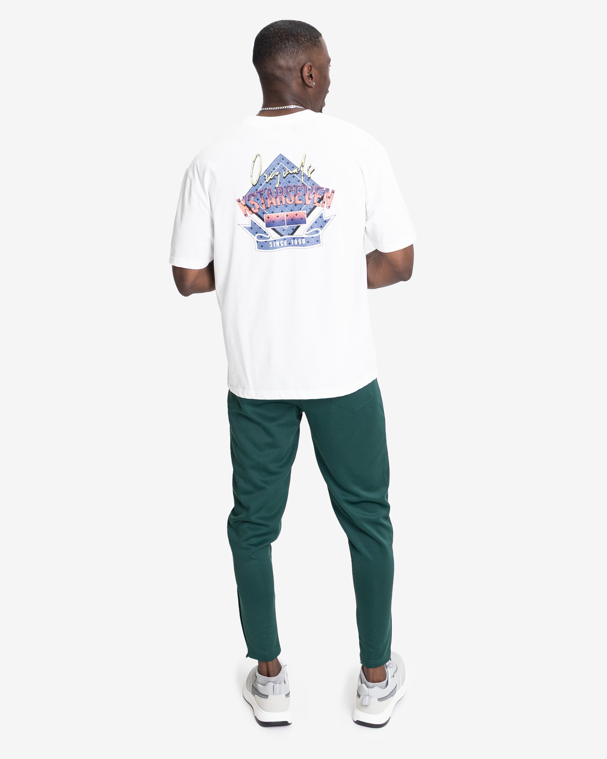 Introducing the Reality Tee, the perfect combination of classic comfort and modern style. This t-shirt is crafted from a durable yet incredibly soft fabric, giving it a substantial feel that's perfect for daily wear. It features a classic crew neck and a striking chest graphic with a unique banner and geometric design that makes a statement without being loud. The Reality Tee is a versatile and stylish staple, a reliable choice for your everyday casual look.